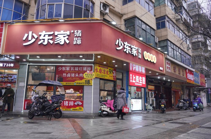 随着品牌的不断建立,一家家分店在郑州各街道开张。在开到第五家分店时,他们自建了工厂,这样,后期的门店面积可以小一些,未来也能保证多门店的商品供应。但工厂只保证原料和可以预制的商品供应,猪蹄瓦罐现卤,猪头肉、夫妻肺片需要当场切拌的工序依然保留。冷藏车和司机也是品牌自雇的,这样可以保证“日日配”的高效率。虽然卤菜的保质期比鲜食更久,少东家猪蹄的每家门店都尽量做到货品当天清空,第二天售卖的都是新鲜货。这种模式自然会增大运营成本,但保证了出品的口感稳定,分店在郑州几乎是开一家火一家。